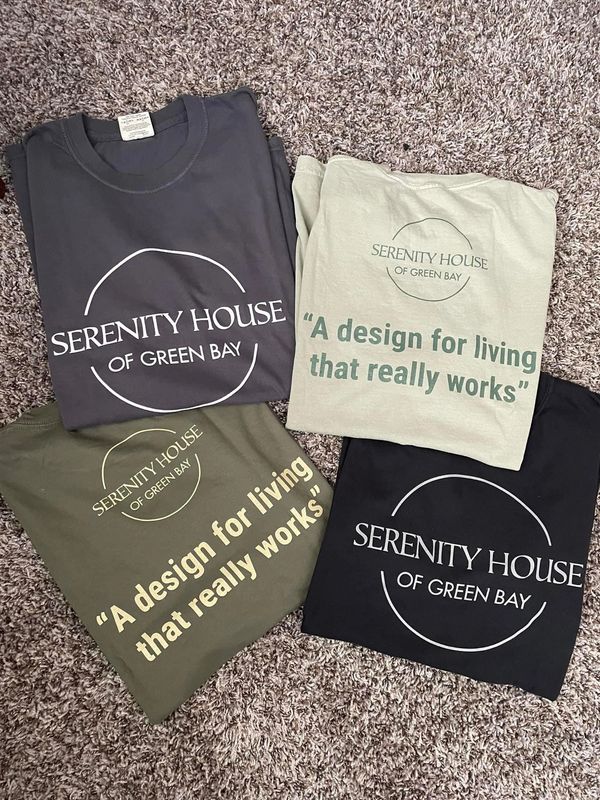 Please email us at Serenityhousegb@gmail.com with any t-shirt orders. You will receive a return email to notify you if your selection is available. Items can be shipped for an extra $5 charge.
